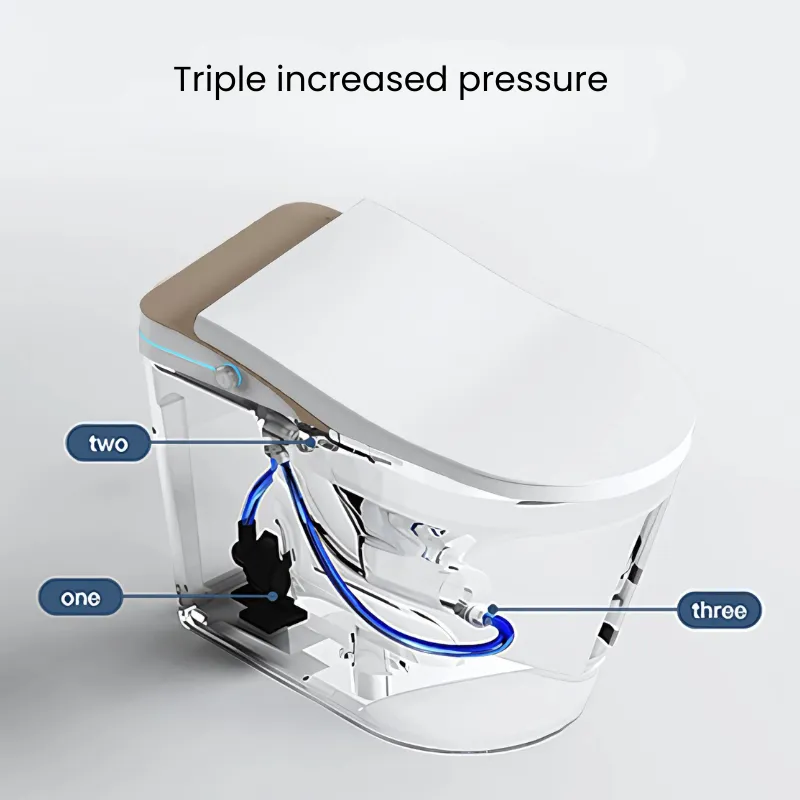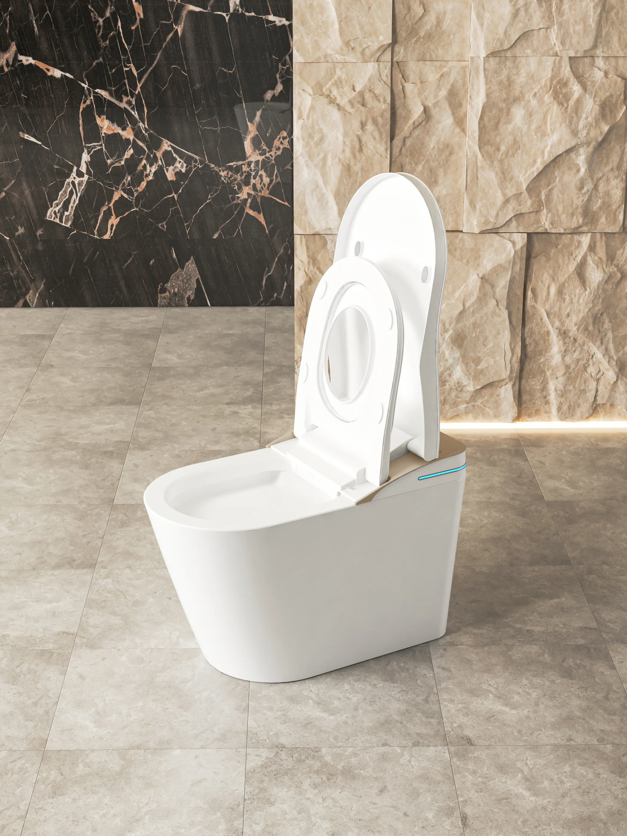 The Neomod MOD31 Smart Toilet offers a touch-free, luxurious experience with auto open sensing, soft-close seating, and automatic sanitization. Featuring 360° UV sterilization, seat heating, warm air drying, and remote control operation, it ensures ultimate comfort and hygiene. Designed for all, it includes baby washing, massage cleaning, and night light functionality. Elevate your space with smart innovation and elegance.