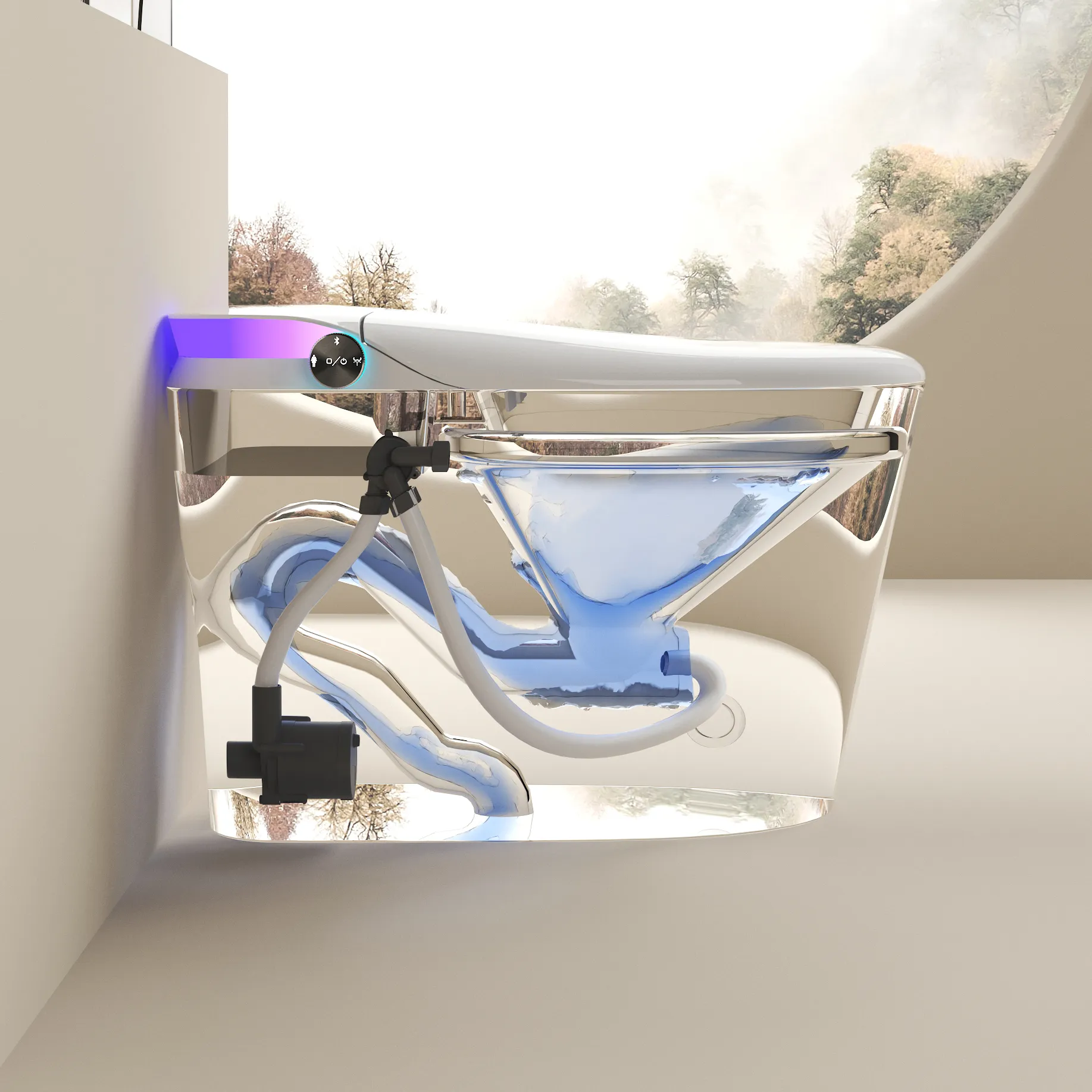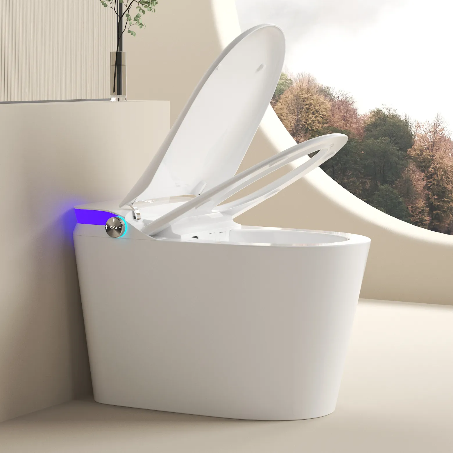 The Neomod MOD40 Smart Toilet redefines comfort with auto open sensing, UV sterilization, spa cleaning, and warm air drying. Enjoy seat heating, foot-sensing flushing, air freshener, and Bluetooth music for a truly smart and relaxing experience.